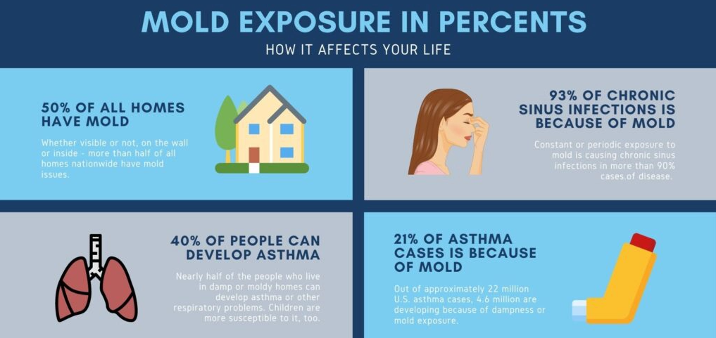곰팡이는 말 그대로 실내, 외부, 그리고 심지어는 우리가 먹는 음식물에도 있습니다. 그렇지만 때때로 많은 사람들눈에는 뜨지 않지만 우리가 모르는 사이에 장기간 곰팡이 에 노출되어 여러 가지 부정적인 영향과 증상이 나타날 수 있습니다. 그리고 곰팡이 포자가 공기 중에 존재하여 호흡기로 흡입될 때 더 많은 부정적인 증상이 나타날 수 있습니다. 그리고 무덥고, 습한 여름철에 더 심해질 수 있습니다. 오늘은 장기간 곰팡이 노출 시 나타나는 증상에 대하여 알아볼까 합니다.